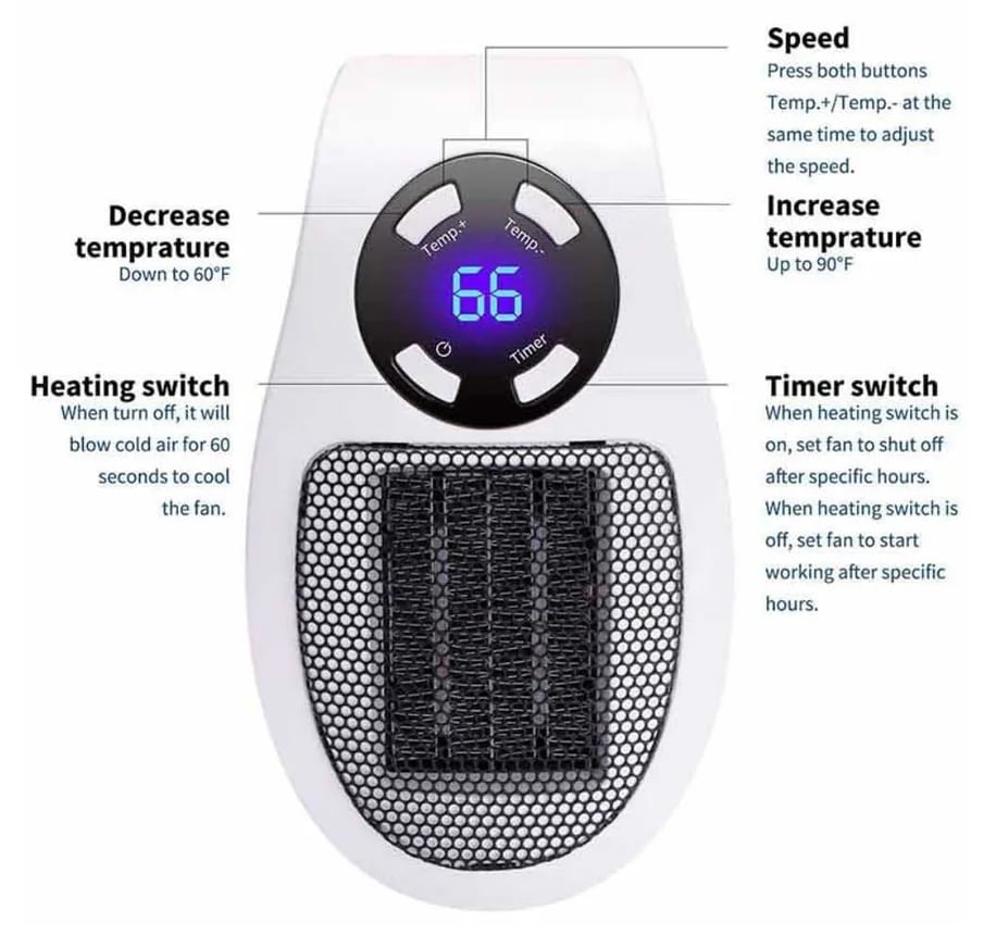 Built-in timer function(1-2 hrs),perfect for preheating the rooms.